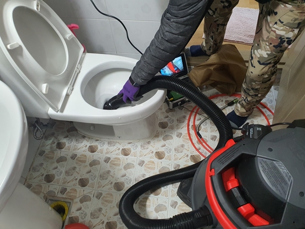 변기를 해체후 빼내는 방법과 석션장비를 이용해서 뚫는 방법이 있다.