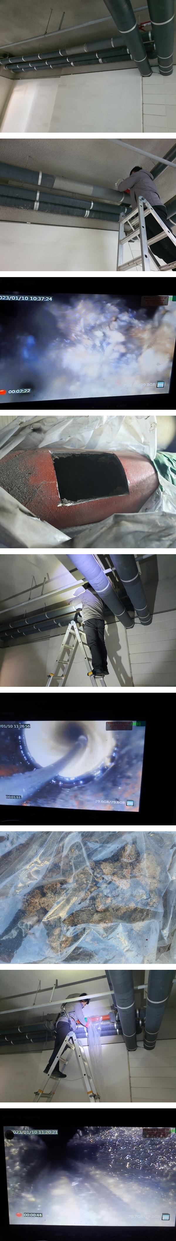 [안성하수구막힘]다세대 상가 주택 2층 하수구 막힘 P트랩이 있어 1층에서 사다리를 이용 드레인샤프트로 작업 집수정에서 한 번더 작업